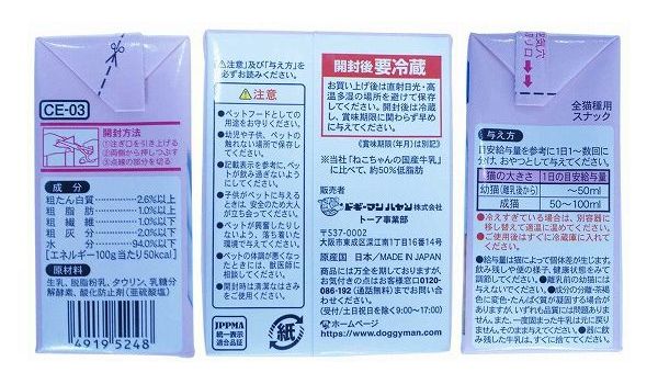 【取り寄せ品のご注意事項(ご注文前にご確認ください)】・本商品は原則注文後のキャンセルはお受けできません。・本商品と他商品で同梱注文をいただき、仮に他商品が完売等でご用意できない場合でも本商品は発送させていただきます。・本商品を複数(2点以上)注文いただき、完売等で注文数のご用意できない場合でもご用意できた数量は発送させていただきます。【商品説明】毎日の健康習慣!・九州育ちの生乳から作った、生乳そのままの風味が生きている愛猫用の牛乳です。・おなかにやさしい乳糖ゼロ。・製造過程で乳糖を完全分解しました。・九州産生乳をそのまま国内工場で製造。・安心できるおいしさです。・着色料や香料は使用せず、生乳の旨さを最大限引き出しています。・脱脂粉乳で成分調整した低脂肪タイプ。・猫ちゃんの健康に配慮し、タウリン強化。●原材料(成分)生乳、脱脂粉乳、タウリン、乳糖分解酵素、酸化防止剤(亜硫酸塩)●賞味/使用期限(未開封)12ヶ月※仕入れ元の規定により半年以上期限の残った商品のみ出荷致します●保存方法別途パッケージに記載●原産国または製造地日本●メーカー名ドギーマンハヤシ 株式会社【送料について】北海道、沖縄、離島は送料を頂きます。