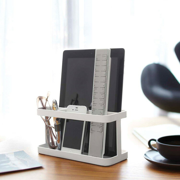 奥には様々なサイズのタブレットPCをすっきり収納。手前にはリモコン、携帯電話、ペン、メガネ、DMなど、リビングまわりの小物をまとめて収納。本体:スチール(粉体塗装)、マット:シリコーン8.5×21×10.5cm【代引きについて】こちらの商品は、代引きでの出荷は受け付けておりません。【送料について】北海道、沖縄、離島は送料を頂きます。