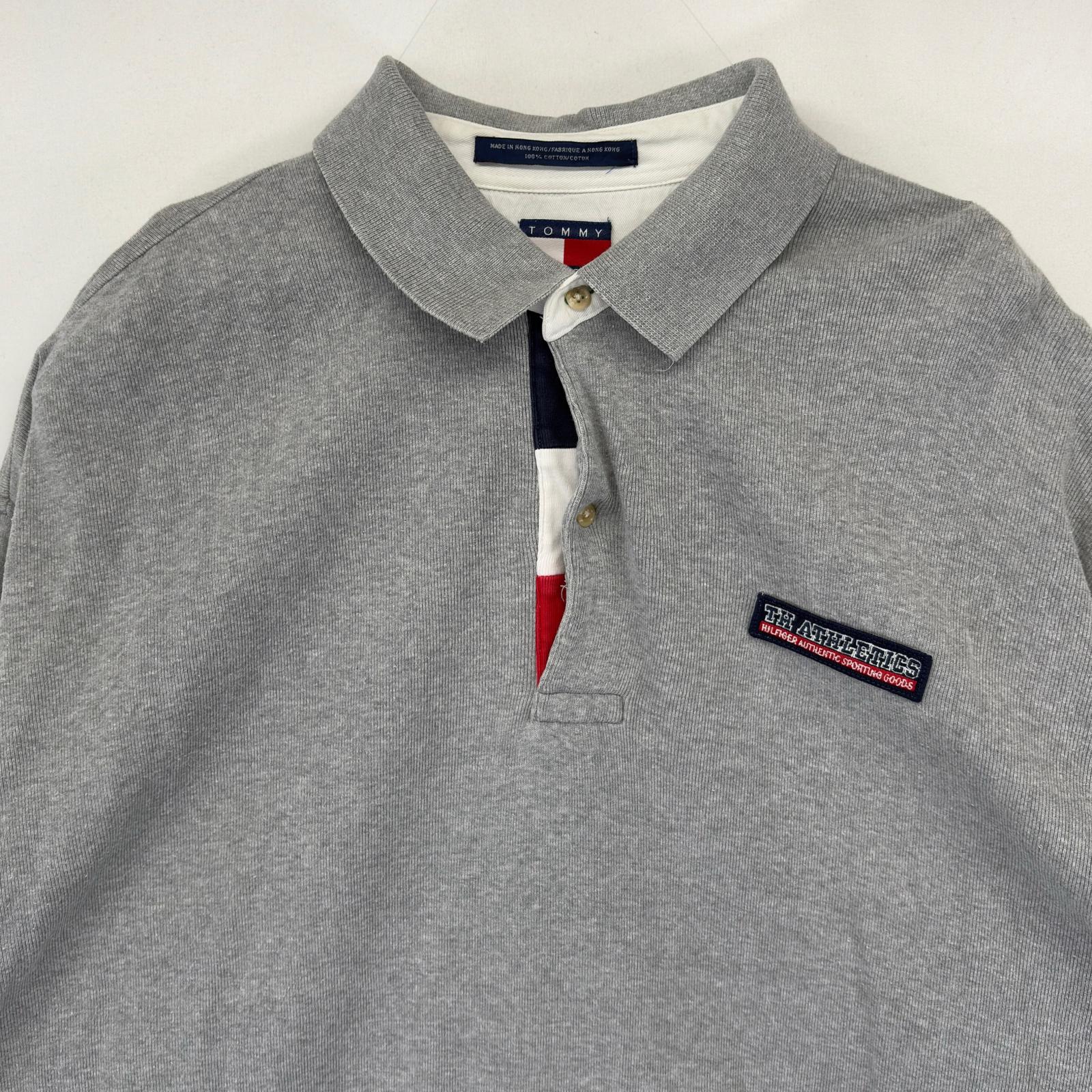 古着 トミーヒルフィガー TOMMY HILFIGER 長袖 ポロシャツ ワンポイントロゴ 2ボタン スウェット生地 大きいサイズ XL グレー メンズ 【中古】