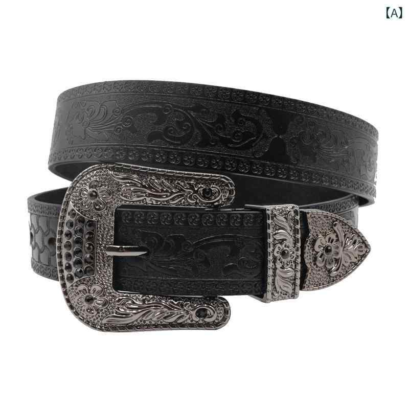 素材: 革 (トップグレーンレザー)バックル素材: 合金留め具の種類: ピンバックル要素: アルファベットカラー: ブラック, イエロー, ダークレッド幅: レギュラー幅 (2-4cm)長さ: 105cm, 115cm, 125cmスタイル: 加工: ラインストーン装飾, 彫刻, ホットフィックス加工, エンボス加工