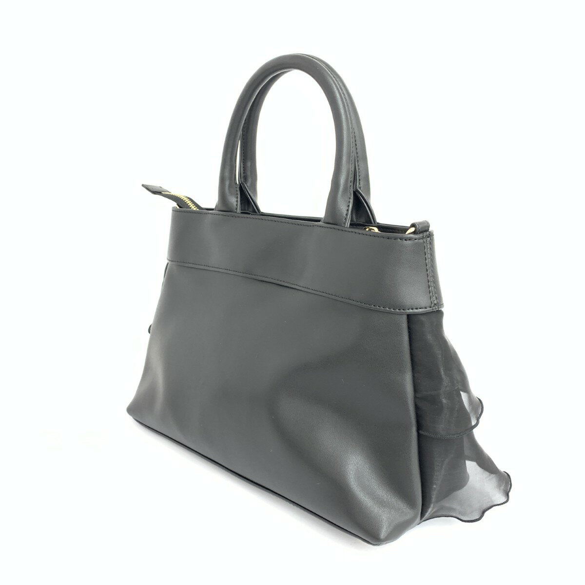 MARY QUANT マリークワント ティアードフリルシアー2WAYトート 美品 PVC ブラック レディース【中古】