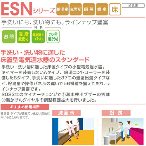 【送料無料】日本イトミック 小型電気温水器 ESNシリーズ 床置 先止め式 キッチン用 単相100V 1.1kW 50L わきあげ温度:30〜75度 操作部:A 配管向き:左 ESN50ALN111E0 単相100V 1.1kW