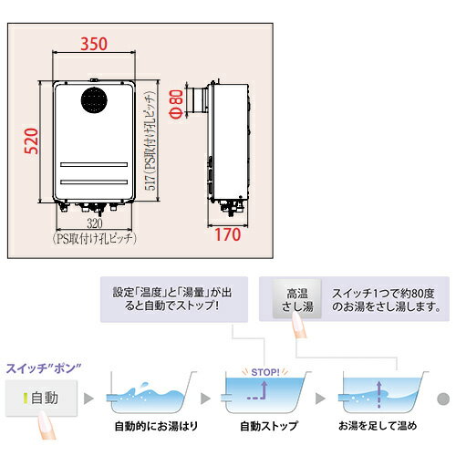 【セット内容】 (1)FH-1611ZATL-2 ・本体 ・浴室リモコン付属(FC-250VZ) (2)MC-250VZ ・リモコンセット(台所) (3)BMZAWS-L1 ・循環金具(バスアダプター) L型ネジ接続タイプ 【規格・特徴】 ・PS扉内設置型前方排気 ・16号 ・排気筒口径:φ80 ・延長不可 ・サイズ:H520×W350×D170mm ・質量:17kg ・高温水供給式 ・給湯給水接続15A ・BL認定品 【別売部材】 ・増設リモコン ZC-250 ・リモコンケーブル(8m) K-2BW-8m ・バスアダプター BMZAWS-L1 ・取付ボックス TBPH-11 ・取付ボックス TBPH-12 ・排気変更アダプター HHSL-1A ・ブラケットセット BRPH-1(2) ※上記部材、リモコンなどは一例です。その他の部材をご希望の場合はお問い合わせください。 【商品説明】 おいだき機能がなくても、お好みの湯温に調整できる高温水供給式タイプの給湯器です。 【大型商品の配送について】 ■基本ドライバー1人で訪問の為、荷下ろしの際にお手伝いできる方が必要となります。 ■時間指定が出来かねます。 詳細の配送状況につきましては、直接運送会社へご確認お願い申し上げます。 不在時は、不在票が投函されますので、お客様にて再配達のお手続きをお願い申し上げます。 2024年1月 高温水供給 PALOMA Paloma パロマ 給湯器 循環金具セットパロマFH-1611ZATL-2-set
