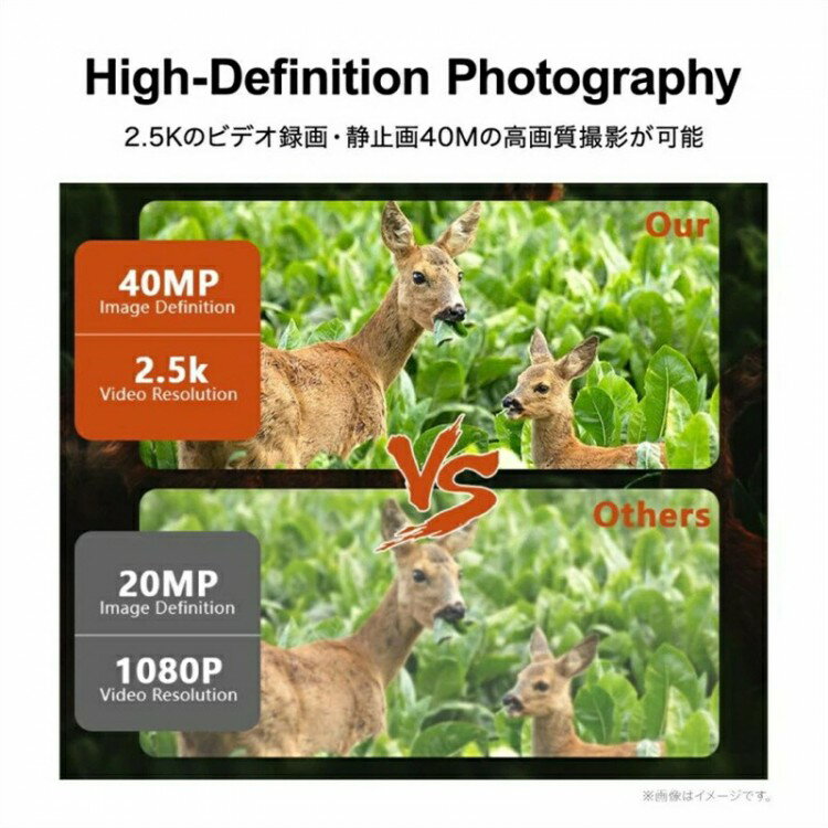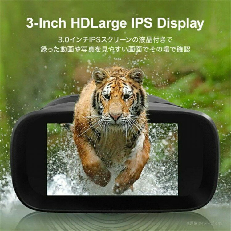 商品情報3W・850nmの赤外線ライトを搭載。最大300m先まで撮影でき、3段階の明るさ調整が可能。夜間の観察や防犯用途にも活躍します。暗視補正付きだから、光の少ない場所でも明るく補正して撮影可能。夜間のアウトドアや動物観察にも最適です。高精細なIPSディスプレイ搭載。録画・撮影した映像や画像をその場で確認でき、視野角も広く見やすい画面です。・3枚連写機能・録画速度:通常/倍速/1/2倍速・ループ録画&ファイル分割機能用途やシーンに合わせて、自由自在に使いこなせます。暗い場所でも見えるバックライト付き操作ボタン。手袋をしたままでも押しやすく、直感的に使える設計です。日本語メニュー対応で、誰でも簡単に操作可能。言語切替もスムーズで海外の方にも使いやすい仕様です。底部に三脚穴を搭載。長時間撮影や定点観察も安定して行えます。滑りにくく手にフィットするTPU素材を採用。高級感のあるマットな仕上がりで、見た目も使い心地も上質です。商品名:夜間でも録画ができる双眼鏡本体寸法:140×124×60mm本体重量:約331gレンズ:FOV=10° 直径 24mm フレームレート:30fpsイメージセンサー:CMOS写真解像度:40M、30M、25M、20M、10M、8M、5M、3Mビデオ解像度:2.5K UHD、1080FHD、1080P、720Pディスプレイ:3インチ 640×480 IPSストレージ:最大サポート64GB(別売り)赤外線LED:3W 850nm暗視レベル:3段階の赤外線調整倍率:光学=4x、デジタル=4xIR距離:250-300M視距離:3Mから無限大(弱光)防塵防水:IP65電源:充電式リチウム電池2500mAh 型番18650充電時間:約2.5時間電池持続時間:DAY=約10時間、NAIGHT=約3時間セット:本体、USBケーブル、専用ポーチ、ストラップ、取扱説明書兼保証書(日本語)保証:1年製造:中国悪用厳禁 暗闇でも録画ができる暗視双眼