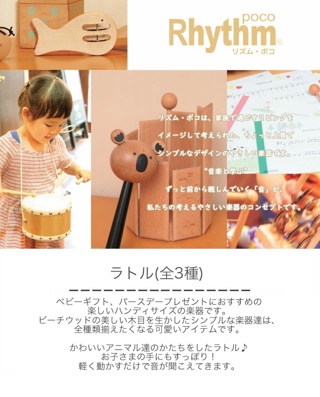 ※納期お問い合わせください※ リズム・ポコ ラトル ベア(RP-120/BR/BW) パンダ(RP-120/PD) カエル(RP-120/FG) リズムポコラトル Rattle 木製 玩具 楽器 ベビーギフト プレゼント ナカノ