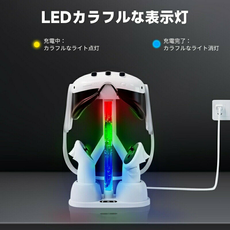 【在庫一掃】Meta Quest 3 充電ドック スタンドセット ワイヤレス磁気急速充電器 RGBライト付き USB充電ベース ヘッドセット&Touchコントローラー対応 VRアクセサリー