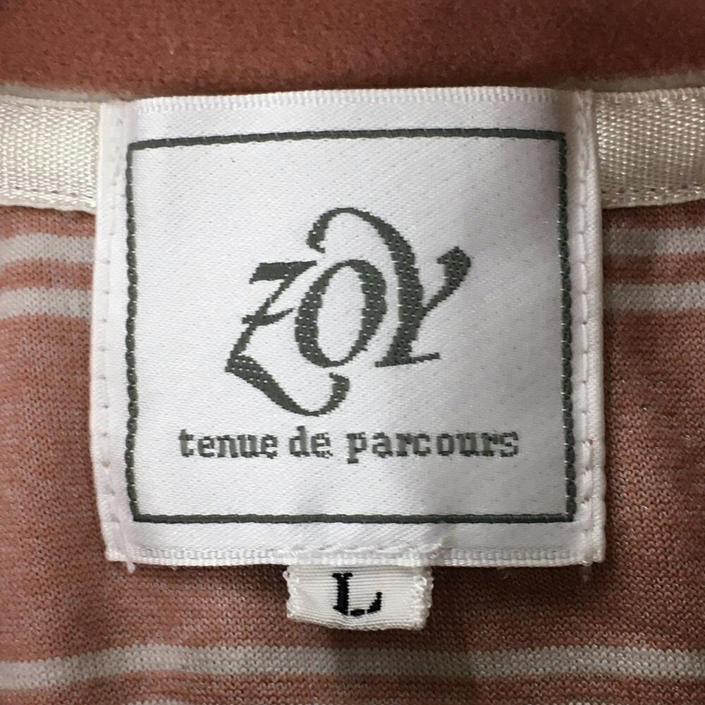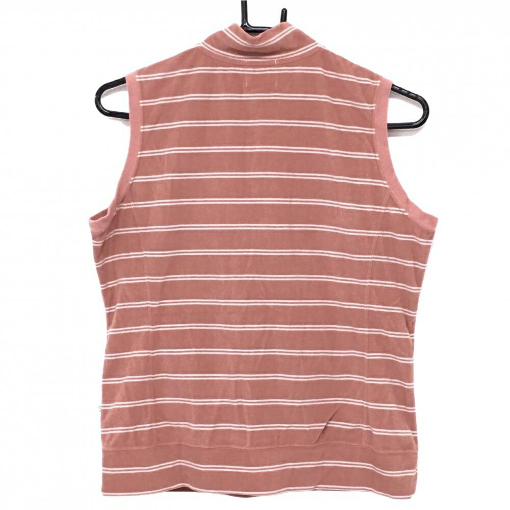 【超美品】ゾーイ フリースベスト ピンクベージュ×白 ボーダー ハーフジップ 腹部ポケット レディース L ゴルフウェア ZOY