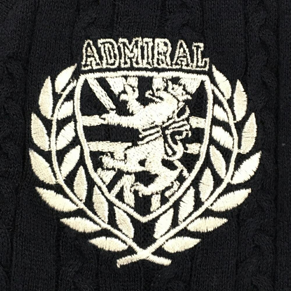 【美品】アドミラル ニットベスト ネイビー×白 ネック・裾2ライン ケーブル編み ロゴ刺しゅう レディース M ゴルフウェア Admiral
