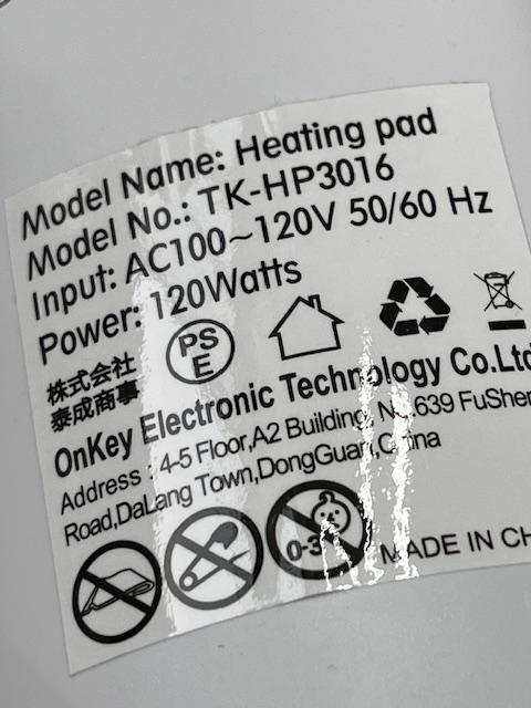 【動作確認済】【中古】本体のみ Onky 1人用 電気ホットマット TK-HP3016 ブルー系