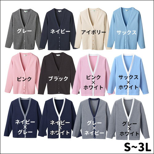 特 長 ●12色から選べる、人気のVネックカーディガン。 仕 様 ●品質:ポリエステル65%・綿35%・リブ編み ●機能: 家庭洗濯可能 ●カラー: ・グレー ・ネイビー ・アイボリー ・サックス ・ピンク ・ブラック ・ピンク×ホワイト ・サックス×ホワイト ・ネイビー×グレー ・ネイビー×ホワイト ・グレー×ネイビー ・グレー×ホワイト の12色からご選択頂けます。 ナースウェア、事務服、作業服、部屋着、仕事着、仕事用カーディガン、レディース、 レディースカーデガン、カーデガン、ベーシック、シンプル、着回し、看護婦、看護師