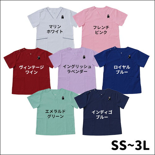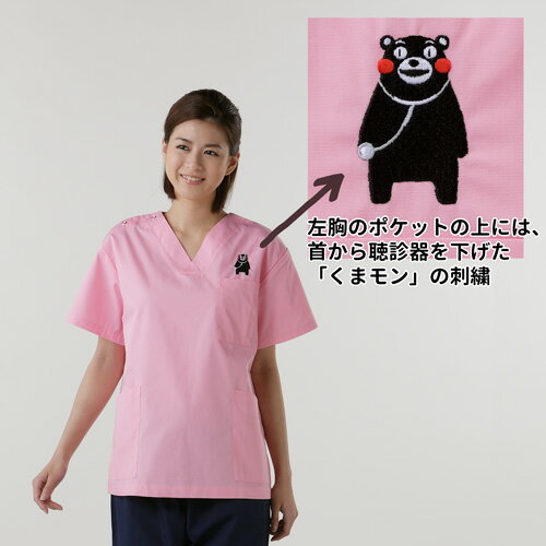 ≪ディーフェイズ≫男女兼用スクラブ【くまモン刺繍入り】 (全7色) SS〜3Lサイズ DS-2001K