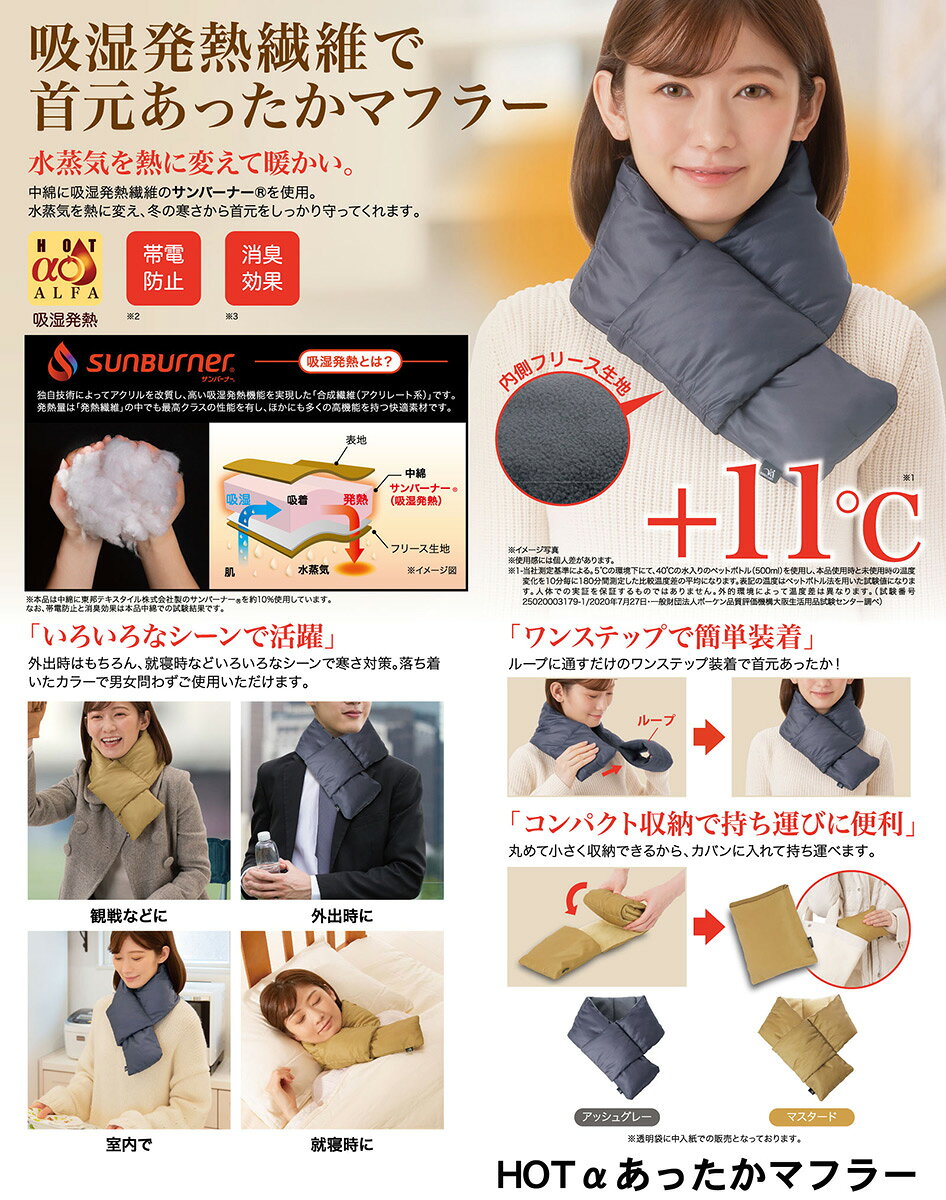 HOTα あったかマフラー【2個】★後払い可!☆選べるおまけ★ 2個セット 送料無料 吸湿発熱 あったか 暖かい フリース 帯電防止 消臭 サンバーナー マフラー 簡単 ニーズ 60s sdf