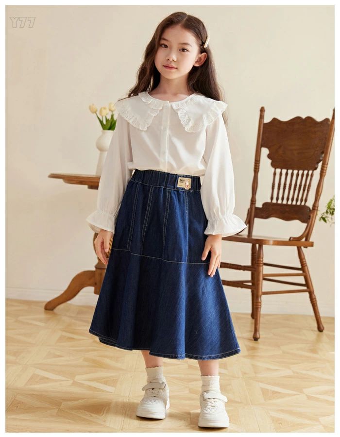 夏着 女の子 レジャー 誕生日 秋着 リゾート かわいい スカート 通学着 子ども服 結婚式 キッズ 160 スカート ブルー ロング丈スカート 春着 120 デニムスカート イベント ロングスカート デニムスカート 旅行 おしゃれ 110 130 150 140 韓国子供服 ガールズ