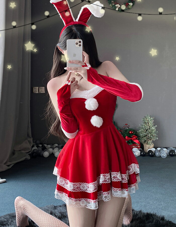 【4点セット】クリスマス バニーガール サンタコスプレ エロ sm 過激 誘惑 可愛い 調教 人気 かわいい うさ耳 尻尾付き セクシーランジェリー スリットナイトドレス コスチューム 大胆 カップル刺激 アダルトグッズ クリスマスコスチューム 仮装