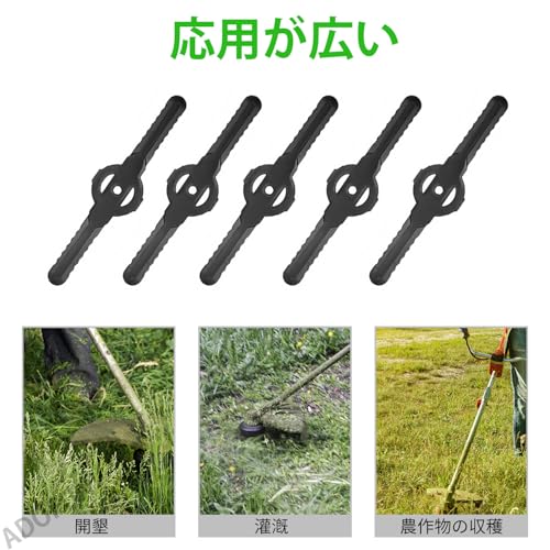 高品質素材、長持ち、耐久性この芝刈り機の刃は、耐摩耗性と耐衝撃性に優れた高品質のプラスチック製です。 プラスチック製ブレードは従来の金属製ブレードより軽く、芝刈り機の全体的な重量を軽減し、操作を容易にします。 高品質素材により、長時間の使用でも切れ味が持続し、交換頻度が少なくなります。・ジグザグデザイン、効率的な切断ジグザグブレードデザインは、行き止まりを残すことなく、様々な高さの芝生を簡単に切断することができます。 ブレードのエッジは、よりスムーズな切断をし、芝生の引き裂きや破損を減らすために特別に処理されています。 高い切断能力により、芝刈り時間を大幅に短縮し、作業効率を高めます。・簡単な操作ブレードの取り付けは簡単で、専門的な工具は必要ありません。 プラスチック素材は、草刈り時の騒音や振動を低減し、使い心地を向上させる。・様々な芝刈り機に対応このブレードは様々な芝刈り機のブランドとモデルに適しており、幅広い互換性があります。 最適な使用をするために、ご購入前に芝刈り機のモデルとブレードのサイズが一致することを確認してください。 ご質問やサポート1