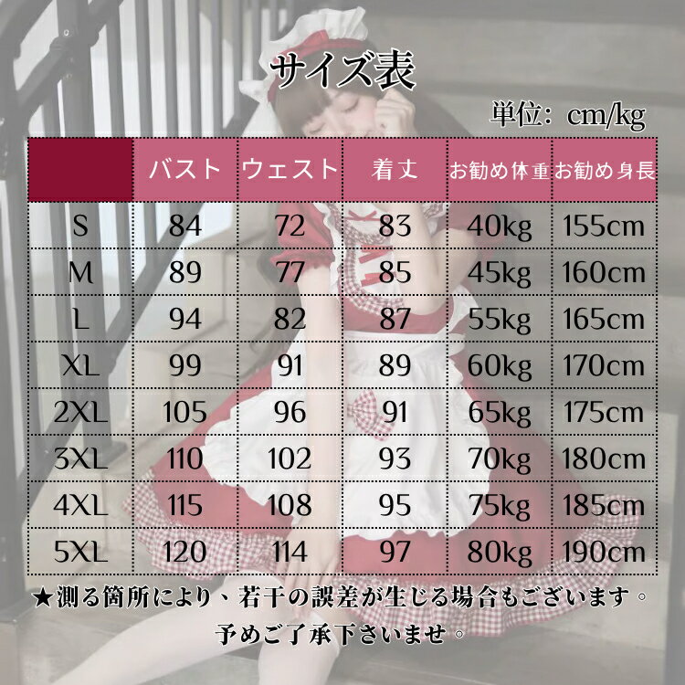 商 品 詳 細 注意項目 サイズや色の変更、キャンセルをご希望される方は支払、決済後2日以内にご連絡ください。 商品内容 3点セット:ワンピース+エプロン+髪飾り 商品仕様 ポリエステル、そのほか 商品サイズ 写真をご参考ください 梱包 ◆ OPP袋と簡易箱に入れて発送しております。予めご了承ください。 ◆ プレゼント用のラッピング包装、熨斗の添付はできません。 注意事項 ※撮影のため、画質などの関係上、色など実際の商品と若干違ってしまうこともあるかもしれませんが、予めご了承ください。※サイズ表は平置きで測定しております。※商品・着用者によっては多少の誤差がある場合がございます。※更新のタイミングによっては実在庫に相違が出る場合がございます。※漬け置き洗いや濡れたままの放置はしないでください。色落ちしやすくなります。ほかのものと分けて、単品での選択の上、すぐに形を整えて干してください。 ※もし商品到着後不良品等、他には気になることがあれば、当店までご一報くださいますようお願い申し上げます。