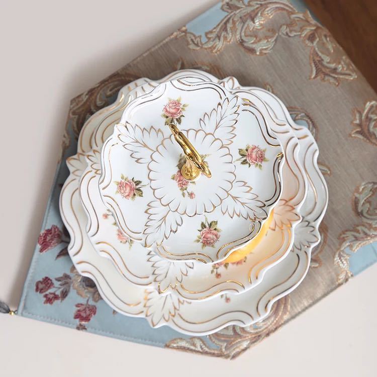 A045437ケーキ スタンド プレート 3段セット アフタヌーンティー フルーツ トレー 皿 .花柄