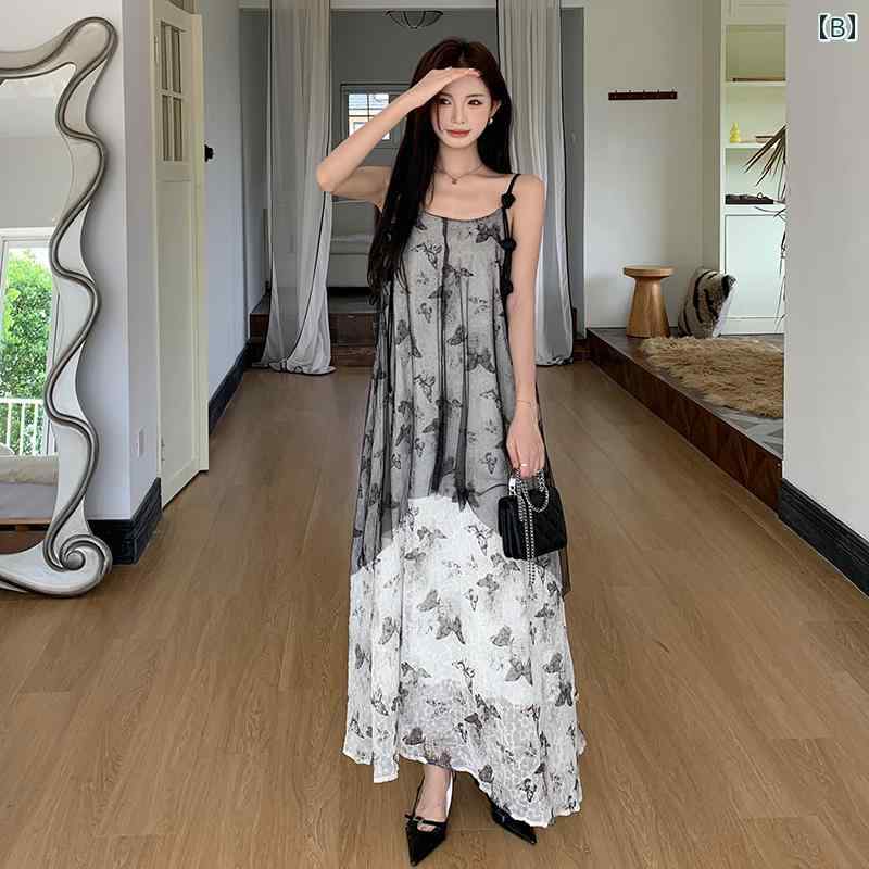 ワンピース ドレス レディース 吊りストラップのエレガントな夏のドレスは、中国風の優雅な仙女をイメージしており、ビーチやリゾートで着るのにぴったりです。interopRequireDefault