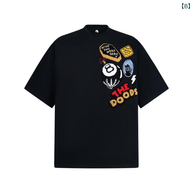 カップル ユニセックス ウェア 小 航は まだ 完全な の アメリカン 重い バッジ 刺繍の 綿の 万能 Tシャツ 夏の 男女の カップル 半袖