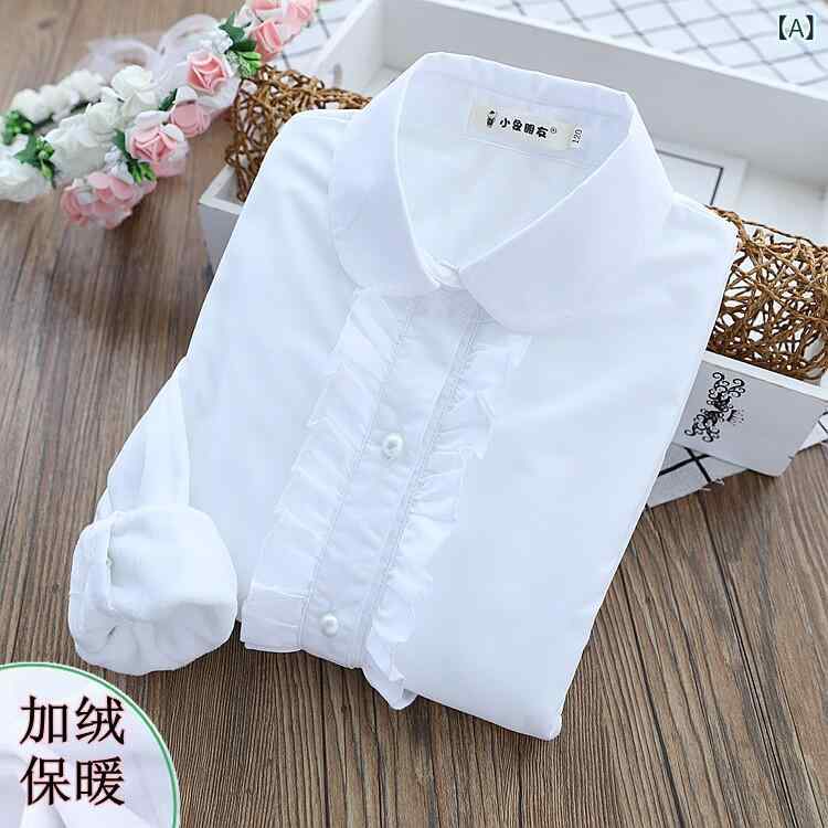 シャツ 女の子 子供用 長袖 白 秋冬 厚手 保温 綿 起毛加工 イベント 校服 暖か 通学 発表会 柔らかい 肌触り 日常使い