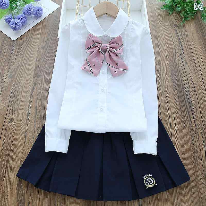 女の子 秋 長袖 セットアップ 綿 白 ブラウス 短スカート 小学生 制服 通学用 おしゃれ トップス スカート 組み合わせ 学校 コーデ