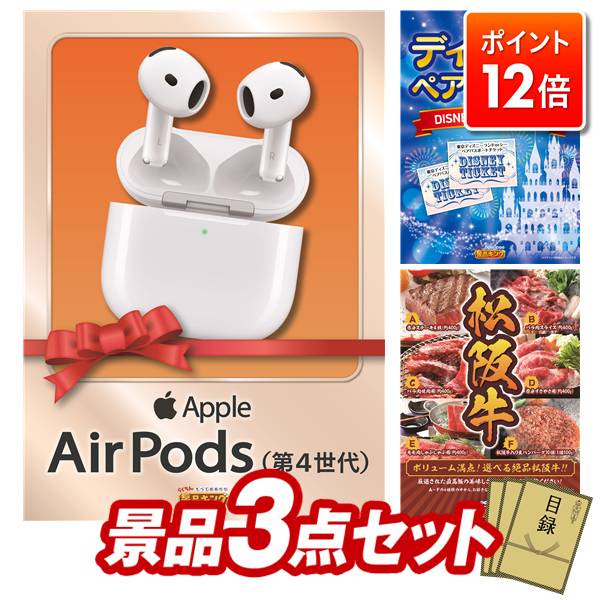 ★ポイント12倍★11/20 20:00〜要エントリー!忘年会景品 3点セット 特大パネル 豪華目録 ビンゴ 結婚式 披露宴 二次会 忘年会 新年会 ゴルフコンペ 景品セット 【AirPods 4、ディズニーペアチケット】 送料無料 特大パネル 豪華目録付き