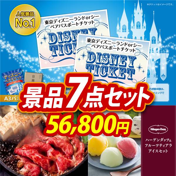 ★ポイント12倍★11/20 20:00〜要エントリー!忘年会景品 7点セット 特大パネル 豪華目録 ビンゴ 結婚式 披露宴 二次会 忘年会 新年会 ゴルフコンペ 景品セット 【ディズニーペアチケット、国産黒毛和牛前バラすき焼き用300g】 送料無料 特大パネル 豪華目録付き
