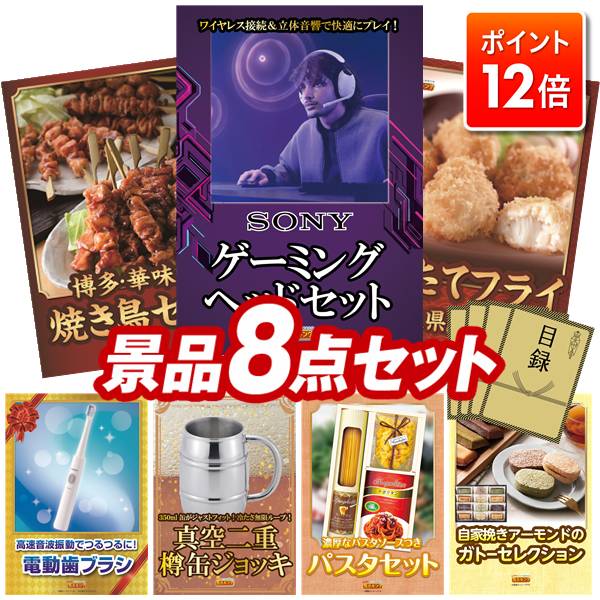 ★ポイント12倍★11/20 20:00〜要エントリー!忘年会景品 8点セット 特大パネル 豪華目録 ビンゴ 結婚式 披露宴 二次会 忘年会 新年会 ゴルフコンペ 景品セット 【SONY ゲーミングヘッドセット、博多華味鳥 焼き鳥セット】 送料無料 特大パネル 豪華目録付き