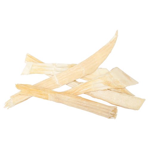 特徴 無添加・無着色の素材系おやつです。 サメ軟骨とヒレ(いわゆるフカヒレ)繊維をいっしょに食べることができる、とても贅沢な逸品です。 コラーゲンと栄養分がたっぷりです。 BokBok(ボクボク)は、インド太平洋熱帯・亜熱帯域全域の沿岸に広く生息する「blacktip shark(日本名:ツマグロ)」というサメ種を主原材料に使用した、タイランド産の犬用サメおやつです。 サメ肉は低カロリー、低脂質、高タンパク質で、サメ軟骨は健康をサポートする成分がたっぷり含まれており、人間用サプリメントが注目されているのと同様、幼犬から老犬、幼猫から老猫まで幅広い世代に適した食材です。 注意事項 ●本製品は間食用です。給与量目安を参考に必ず飼い主様の目の届く範囲内で与えてください。 ●小型犬や歯が弱いワンちゃんの場合、細かくちぎってから与えてください。堅くて食べにくい場合、お湯や水等で少しふやかしてから与えてください。 ●開封後は直射日光や高温多湿の場所を避け早めに与えてください。 ●天然素材の特性上、色・形等にばらつきがありますが、品質には問題ありません。 与え方 【1日当たりの給与量目安】 体重 給与量 〜5kg 5g程度 5〜10kg 10g程度 10〜20kg 15g程度 20kg〜 20g程度 ■原材料:サメヒレ ■成分値:粗タンパク質:71%以上、粗脂肪:0.9%以上、粗繊維:0.2%以下、粗灰分:23%以下、水分:12%以下 ■カロリー:259kcal/100g ■原産国:タイ ■メーカー:株式会社ルークラン