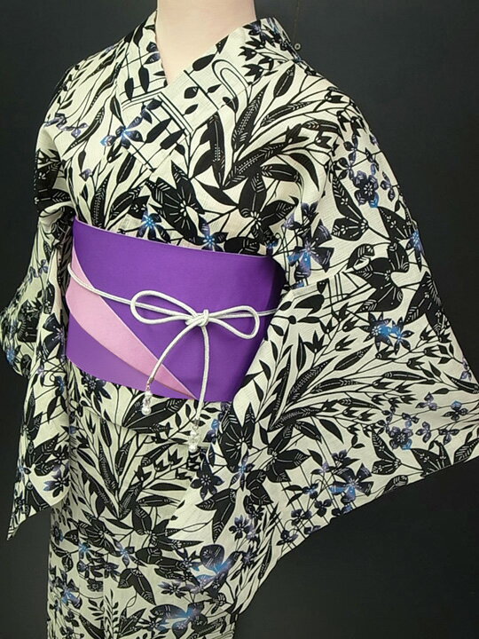 寸法 身丈(肩から):163cm 裄 :66cm 袖 丈:49cm 身長152~167cm位の方までお召しいただけます。 【平帯】自分で結ぶタイプ 長 さ:360cm 幅 :17.5cm 下 駄:フリーサイズ 素 材 着 物:綿80% 麻20% 半幅帯:ポリエステル 日本製 下 駄:焼き桐 綿 状態 新品・仕立て上がりの非常にキレイなお品です。 柄の配置は多少写真と異なることがございます。 色 着 物:ナチュラルおしゃれな生成り色の地に 黒・紫・ブルーの柄 平 帯:明るめの紫・桜色 画像1・2が実際に近いお色です。 着用時期 6月~8月 参考着用年代 60代以上の方までお召しいただけます。 着用シーン 夏祭や趣味の集まり、日常のお出かけなど、 夏のカジュアルなおしゃれにお召しいただけます。 商品説明 当店にて現物の色柄を見てコーディネートした 大変お得な着物・帯・下駄の3点セットです! 帯締は(i885-1)別売りになります。 出品中のものをご覧ください。 ※在庫切れの場合はご容赦下さいませ。 さらりとした質感の良い綿麻素材で涼しくお召し頂ける 草花柄が上品な浴衣です。 モノトーン調の中に、挿し色が品良くアクセントとなり、 しっとりとした洒落感を醸し出します。 綿麻の浴衣は肌触りがとてもよく、汗をかいても肌に張り付きにくく、 涼やかでさらりと快適な着心地です。 また、こちらのお品はしわにもなりにくいですし、 夏にも快適な涼感ある浴衣です。 帯は平帯ですので、様々なアレンジが出来ます♪ 表と裏でお色が違いますので、印象を変えてお締めいただけます。 今の季節、浴衣などの夏の和姿に、ピッタリな桐下駄は、 何と言っても軽くて履きやすいことで人気の高いお品です。 また、台の裏には滑り止めのゴム貼りにて仕上げられておりますので、 滑りにくく歩きやすい工夫がなされています。 現物の色柄を見てコーディネート致しましたので、 浴衣初心者の方にも安心してお召しいただけます! 夏のお洒落を存分にお楽しみください♪ 当店では浴衣に合う髪飾り、かんざし、籠バックも出品しております!着物通販 ロマン着物みやがわ 綿麻 浴衣 帯 下駄 3点セット 草花 生成り色 e247
