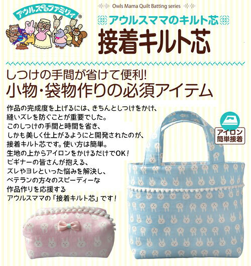片面にのりがついた、ハードタイプのキルト綿(キルト芯)です。 生地にアイロンで接着することによって、しつけの手間が省けます。 トートバッグやポーチ、アクセサリーケース、スマホケースなどの小物が、すっきり美しく仕上がります。 表示価格 1個(100cm×100cm)の価格を表示 サイズ 約100cm×100cm 厚み 約3mm前後 素材 ポリエステル 100% 重さ 約145g 配送 宅配便のみ 【使用方法】 アイロン温度:140〜160度 アイロン時間:8〜10秒 接着キルト芯の、のり面を上にして生地をのせ、生地の表からアイロンをかけます。生地を傷めないようあて布をするとよいです。 【使用上の注意】 ・アイロンは中温のドライで接着してください。 ・接着もれの箇所がないように、全体にまんべんなく、しっかりとアイロンをかけてください。 ・生地によって接着力が得られなかったり、変色する場合がありますので、事前にテストをしてください。 キーワード:手芸、手作り、ハンドメイド、クラフト、手芸用品、キルティング用品、クッション素材、中綿、接着芯、アウルスママ、パッチワーク用品