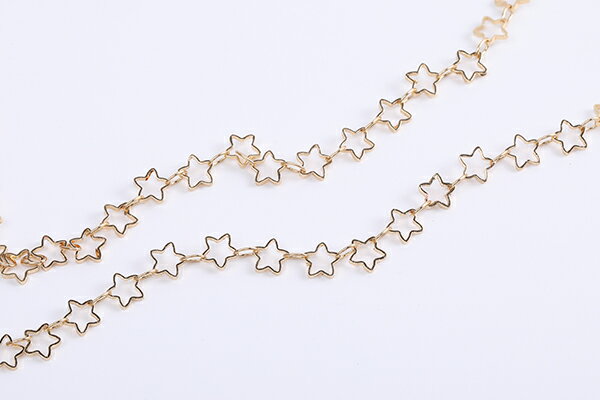 高品質デザインチェーン ハンドメードチェーン 星形 5mm 16Kゴールドメッキ 色落ちしにくい(10cm)