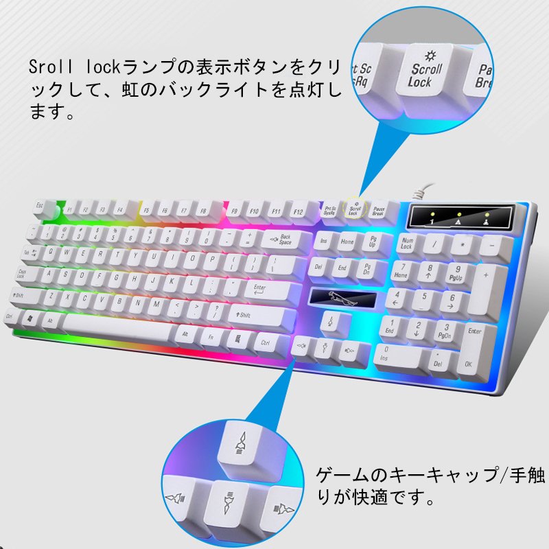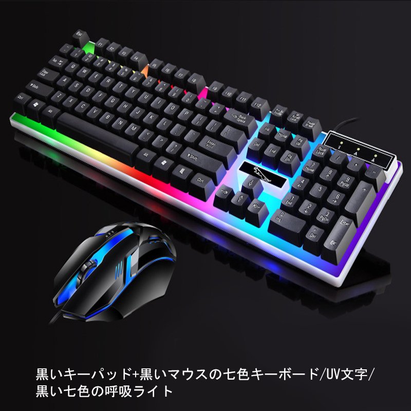 光る マウスセット 英語配列 104キー USB接続 ゲーミングキーボード ライト バックライト 有線 LED パソコン DPI ゲーム