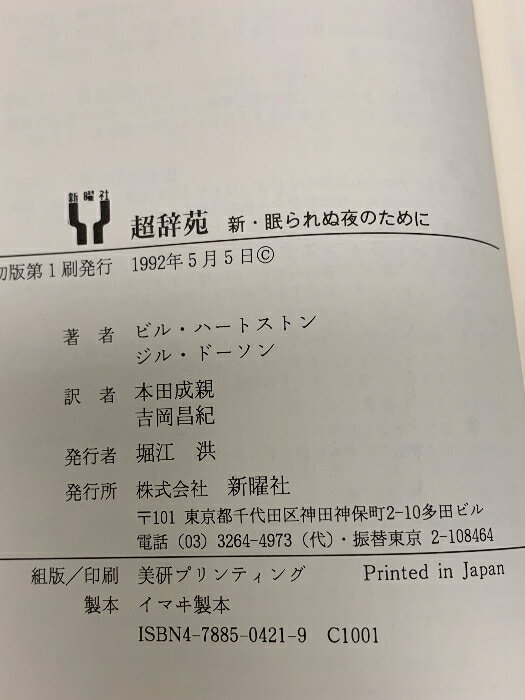 【中古】超辞苑: 新・眠られぬ夜のために 新曜社 ビル ハートストン
