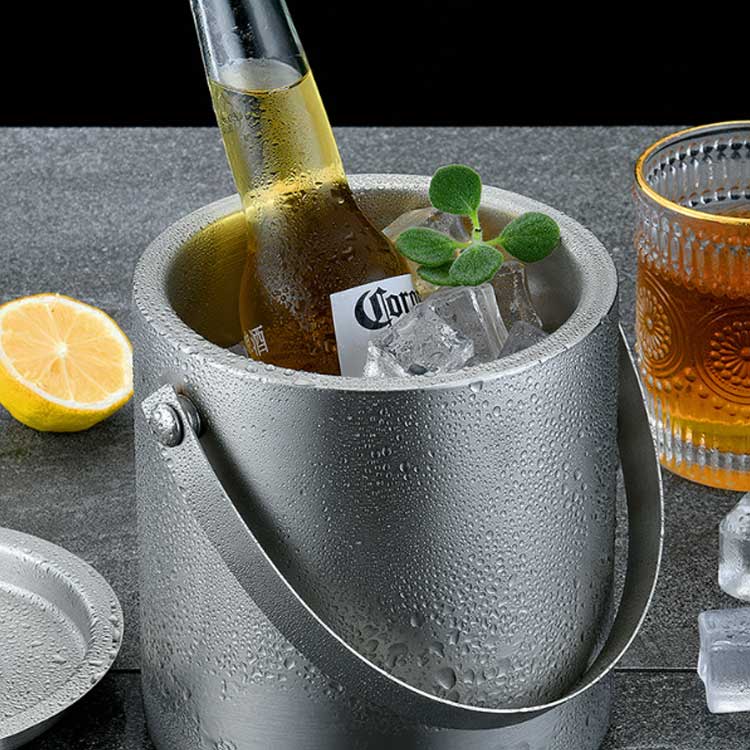 ワイン ポータブル ハンドル付き アイスペール シャンパンクーラー アイススクープ 真空二重 蓋付き ワインクーラー 1.6L クーラー 酒 ステンレス 保冷 氷バケツ 溶けにくい 家飲み 保冷容器 大容量 氷入れ 業務用 パーティー アイスバケット