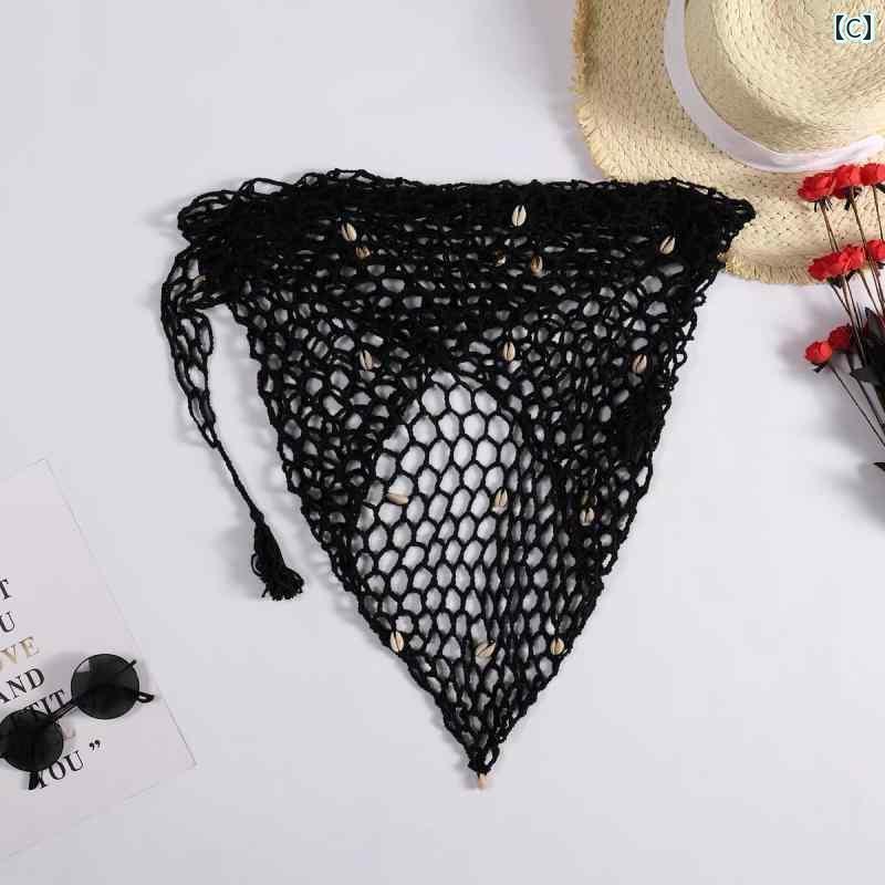 ターバン 帽子 スカーフ ウェイストランド ウィンド ワンダリング スタイル ヒッピー フィッシュ ネット シェル ビーチ タオル トライアングル スカーフ 多機能 ヘッド