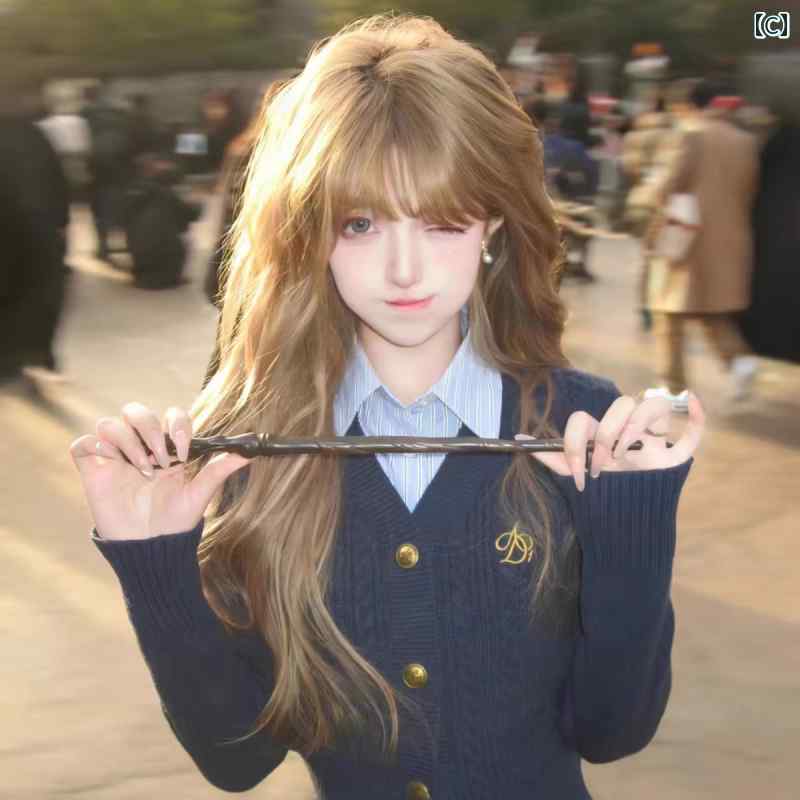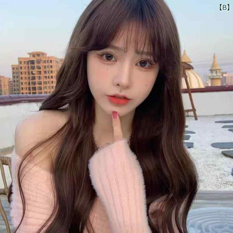 女性用 かつら 女性用 ウィッグ ロング ヘア ネット 風 ナチュラル シミュレーション フル ヘッド セット 韓国 ビッグウェーブ カール ファッション 丸顔