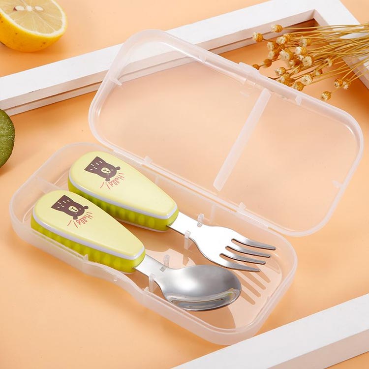 ステンレス 食器 離乳食 トレーニング用 赤ちゃん スプーン フォーク 食事用 乳児用 幼児用 ベビーカトラリーセット 赤ちゃん 出産祝い 収納ケース付き 食べやすい プレゼント 可愛い