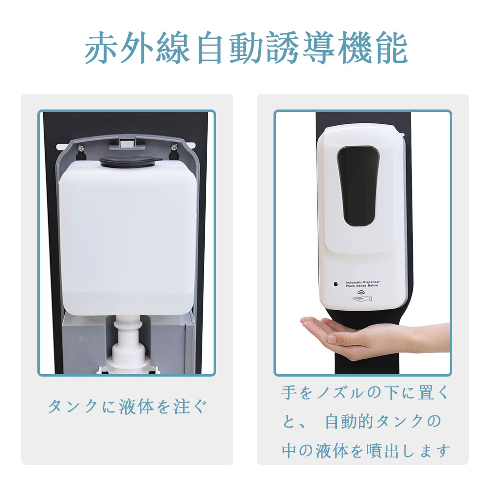 ★工場直送 品質保証★ ★大量注文承ります!★ ★お気軽お問い合わせください。お見積もりいたします。★ 製品仕様 商品名自動誘導手指消毒器 材質金属+ABS 可動式スタンド高さ1050mm-1490mm 本体サイズ270mm*130mm*115mm タンク容量1000ml 液体対応弱酸性次亜塩素酸水、アルコールなど(別売り) 給電方法単三電池×4本/DC6V・1A(電池とアダプターは別売) セット内容本体、可動式スタンド、ドリップノズル、スプレーノズル、金具、英語説明書 保証期間:1年1年間の保証を提供致します。保証期間内に取扱説明書に準じた使用で不具合が発生した場合は、商品の交換対応をさせていただきます。ご注文後のキャンセル・返品・返金はお受けできません、ご了承ください。 どこにも大活躍移動が便利なので、お宅や学校、幼稚園、病院、ホテル、駅、映画館、コンサートホール、オフィス、事務所など公共の場での衛生管理、または風邪や感染予防に最適です。 検索用キーワード 自動 手指消毒器 消毒液 スタンド 自動 オートディスペンサー 消毒液 自動 消毒液 噴霧器 自動検温消毒一式器 ハンドソープ ディスペンサー 自動 泡 消毒液 ディスペンサー 自動手指消毒機 自動 手指消毒器 ソープディスペンサー 自動 液体 ソープディスペンサー 自動 おしゃれ ソープディスペンサー 自動 泡 ハンドソープ ディスペンサー 自動 泡 ソープディスペンサー 液体 オートディスペンサー ハンドソープディスペンサー ソープ ディスペンサー 泡 自動 おしゃれ ソープディスペンサー 泡 ソープ ディスペンサー 泡 自動 おしゃれ ソープディスペンサー 泡 ソープディスペンサー かわいい ソープディスペンサー 自動 シャンプー ディスペンサー ソープディスペンサー 壁 シャンプー ディスペンサー ソープディスペンサー 泡 ソープディスペンサー 壁 ソープボトル ソープ ディスペンサー 泡 自動 おしゃれ ハンドソープ ディスペンサー 自動 泡 ハンドソープ ディスペンサー 自動 液体 ソープディスペンサー 自動 おしゃれ ハンドソープ ディスペンサー 自動 泡 ミューズ おすすめ オート ハンドソープ ディスペンサー ミューズ ノータッチ 自動 非接触 非接触 消毒 スタンド 消毒 除菌カード 非接触 消毒 ディスペンサー ミューズ ノータッチ 詰め替え ミューズ ノータッチ 本体 ハンドソープ ディスペンサー 自動 泡 ミューズ ノータッチ泡ハンドソープ ミューズ ノータッチ泡ハンドソープ 詰替え ミューズ ノータッチ ポケモン ミューズ 泡 ハンドソープ 詰め替え ノータッチ ハンドソープ ノータッチ泡ハンドソープ ミューズ 泡手指消毒器 商品情報 赤外線高感知センサー プッシュは不要・ノータッチ式のソープディスペンサー 自動赤外線高感知センサーから、オートソープディスペンサーは手をかざすだけ、自動的に程よい量のソープが楽々出液できます。ハンドソープディスペンサーに触れずに使えるので、衛生的で、周りが汚れにくいです。風邪や食中毒の季節にもしっかり除菌できます。 二種類ノズル 迅速かつ簡単な手指消毒が可能になり、交差汚染がなくなり、最適な手指衛生が実現します。ドリップとスプレー2種類対応できます。 移動便利 自立式なデザインで、どこに置いでも自由に移動可能です。 二つの給電方法、省電力 消毒器は4本の単3電池またはDC電源6V/1A(電池とDC電源は別売です)で駆動します。低エネルギー消費の駆動回路設計により、バッテリーの寿命が長くなり、公共の場所に最適です。 どこにも大活躍 移動が便利なので、お宅や学校、幼稚園、病院、ホテル、駅、映画館、コンサートホール、オフィス、事務所など公共の場での衛生管理、または風邪や感染予防に最適です。 注意事項 (1)誤作動を防ぐため、機械の下に少なくとも40cmのスペースを残してください。強い日光にさらされる場所や強い反射物の上に設置しないでください。 (2)物体が液体の出口を塞がないでください。 (3)機械内部の液体を、他のストリップまたはブロック不純物なしで清潔に保ちます。 (4)水で機械に直接さらさないでください。 (5)分解時に容器に液体が入っている場合は、平らに置かないでください。さもなければ、液体が流れ出てモーターや回路基板に浸り、製品が損傷する恐れがあります。