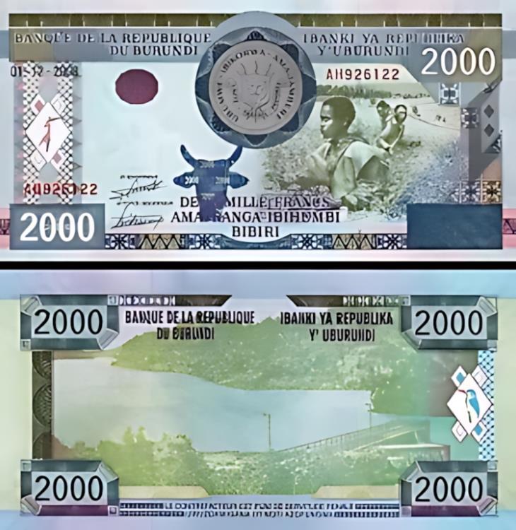 ブルンジ 2000 フラン 1-12- 2008、UNC、5 個 LOT、連続、P-47