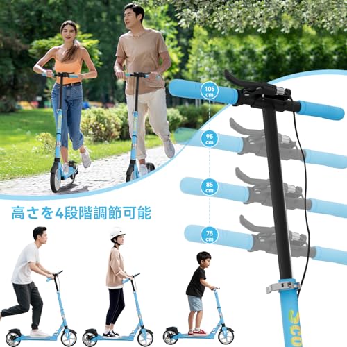 MEE GOO【2025年 発売】 折りたたみキックボード 大人用キックスクーター ディスクブレーキ&リアブレーキ 二重サスペンション搭載 高さ四段階調節可能 200mm PUホイール ABEC-7ベアリング 耐滑ワイドデッキ 耐荷重100kg(ブルー)ブランド: MEE GOOメーカー: MEE GOO