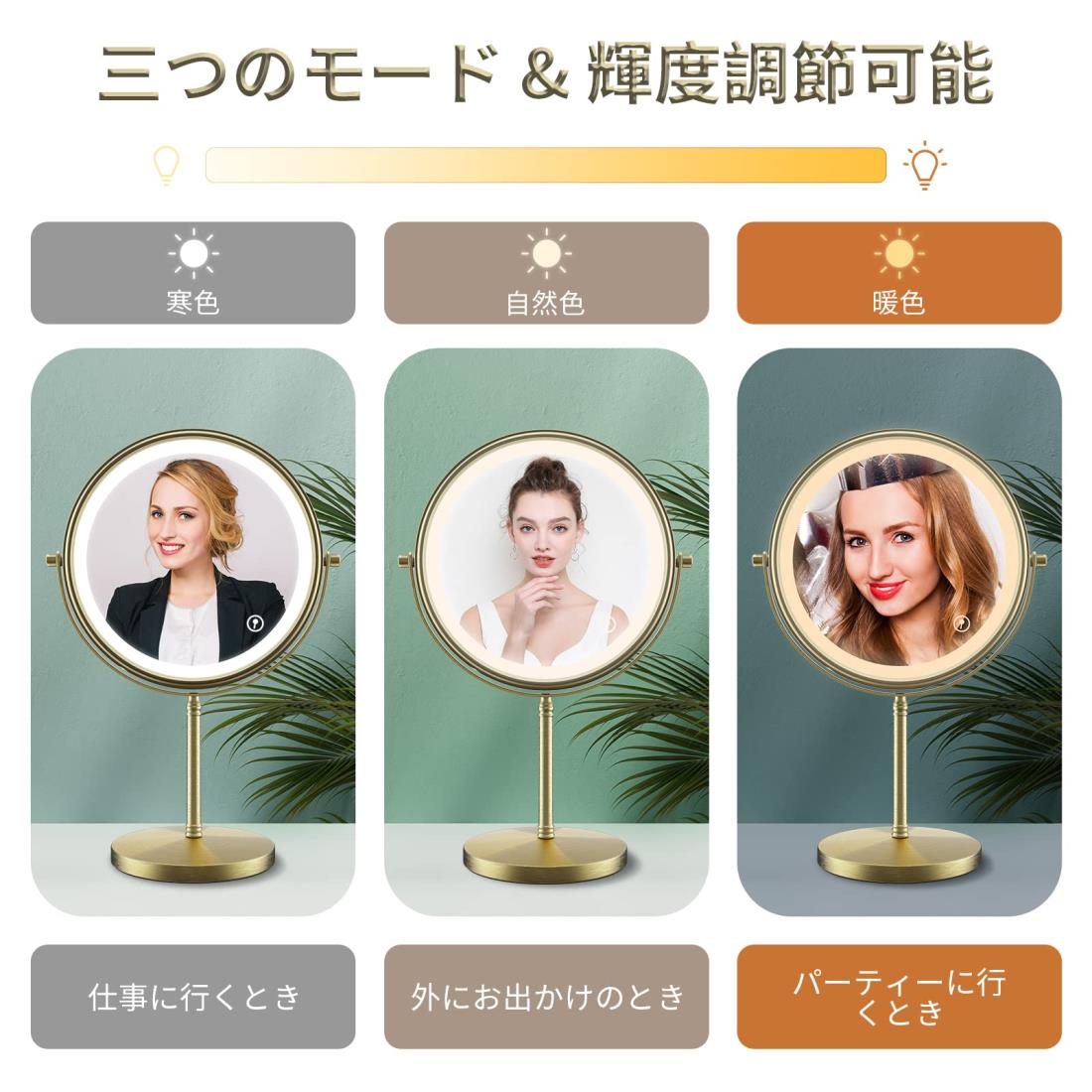 【1倍&5倍拡大鏡】5倍拡大鏡は毛穴・眉毛・うぶ毛までズームで映すから、女優ミラーのような精密メイクが可能! 卓上鏡としても便利で、1倍と5倍を切り替えれば、つけまつげの調整やコンタクト装着もラクラク。拡大鏡 5倍の威力で、いつもよりプロ級の仕上がりに。【ライト付き&USB充電式 】ライト付きミラーのLED照明が顔の立体感をクリアに映し出し、ハイライトやシェーディングが簡単に。卓上ミラーとして使えば、自宅がメイクルームに早変わり! USB充電式(2000mAh大容量)で最大5時間連続使用可能。【タッチ式&3色調節】ワンタッチで「寒色・自然色・暖色」を選択可能。ライト付き機能と組み合わせれば、オフィス(寒色)からパーティー(暖色)まで、五倍拡大鏡付きで全てのシーンに対応。長押しで明るさ調節も自由自在!【360度回転可能&大きいサイズ】卓上ミラーならではの360度調整可能なスタンドで、アイメイクの死角を解消。直径200mmの大鏡面で顔全体をチェックできる拡大鏡 5倍付き。鏡 ライトとの組み合わせで、メイクの精度がさらにアップ!【メモリー&消灯機能】25分後の自動オフ機能で充電切れを防止。ライト付きミラーながら省エネ設計で、女優ミラーレベルの機能性と利便性を両立。万が一の不具合も迅速対応!万が一故障や欠陥が発生した場合は当店が責任を持って返品や交換に対応させていただきます。もし何かご質問がございましたらメールにてお気軽にお問い合わせください。
