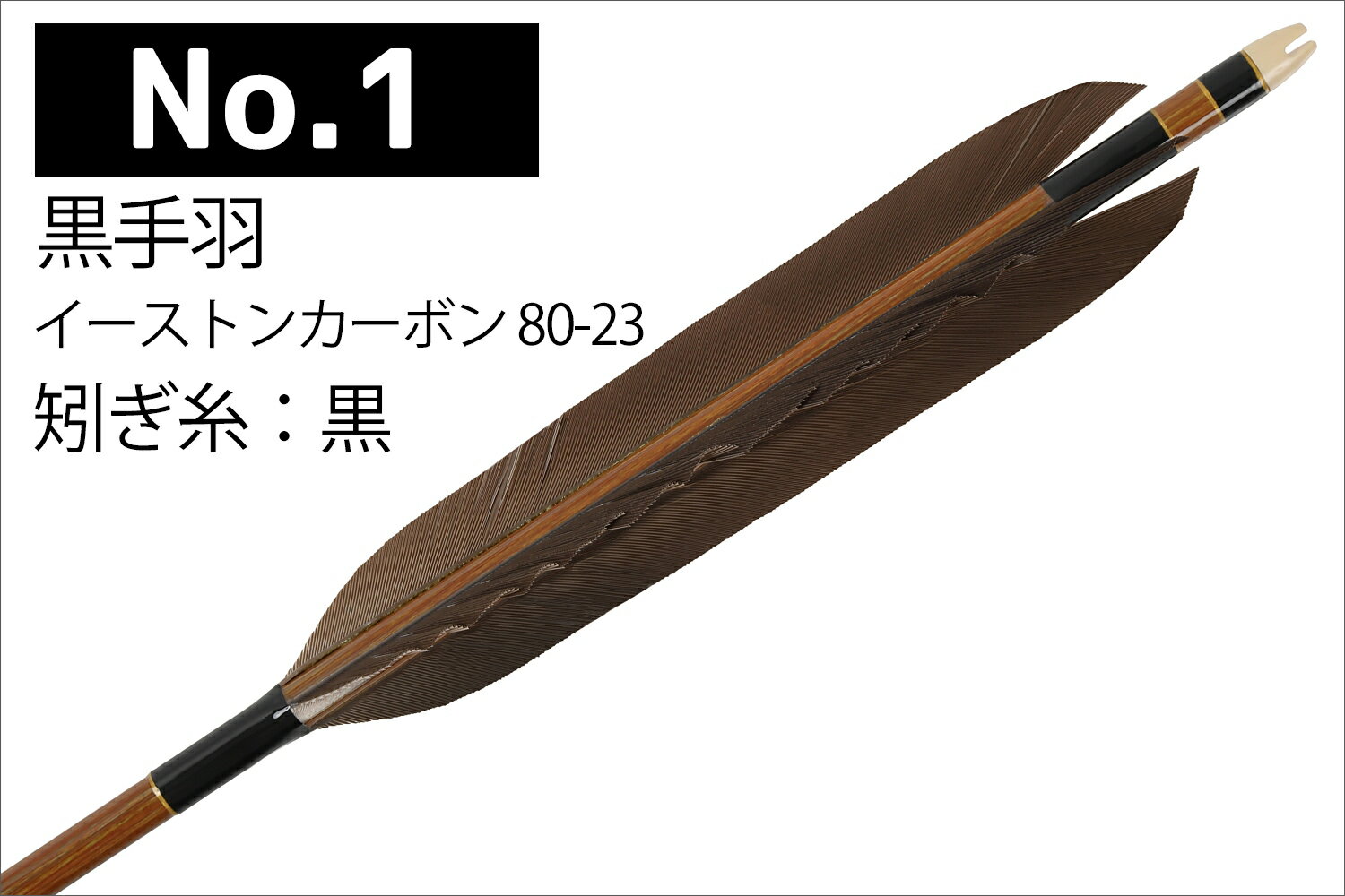 黒手羽 染抜 元白 中白 三符四符 イーストンカーボン 80-23 6本組 (ハギ糸: 白・黒・290(青系)) 推奨弓力 13kg以上 商品番号 D-1785 弓道 矢 山武弓具店 送料無料