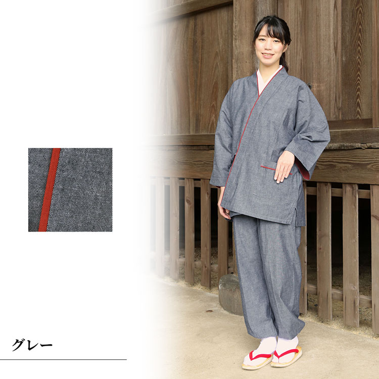 【送料無料】【日本製】遠州ダンガリーさむえ(紺・グレー・茶・緑)(M-L)作務衣 サムエ さむえ サムイ さむい 秋服 春服 通年 和服 和装 女性用 レディース 大人用