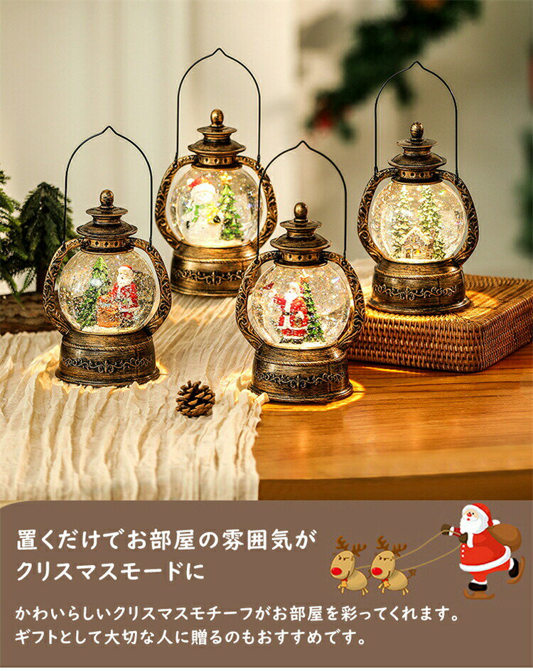 スノードーム クリスマスオルゴール スノーグローブ LEDライト付き 8曲自動ループ クリスマス置物飾り 雪景色ボール 提灯型オルゴール インテリア 北欧 卓上 置物 飾り キラキラ ギフト クリスマスプレゼント 雪だるま サンタ