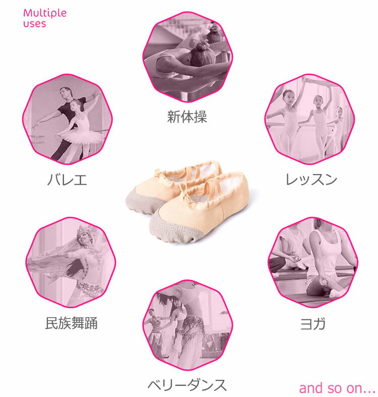 商品説明商品名 ダンスシューズ 左右の違いがないバレエシューズの定番〜〜 お子様から大人の方までご使用いただけるバレエシューズ。足裏のフィット感が良好です。 通気性に優れたキャンバス生地は快適な履き心地を提供します。 前革(フロントレザー)タイプのバレエシューズです。 つま先が伸ばしやすく、甲が出てつま先に革があるため穴が開きにくく滑りにくい、丈夫なシューズです。 ゴムは甲の部分にクロス(2本)すでに縫い付け済みで、引き紐でサイズ調整も可能です。 バレエはもちろん、各種ダンスやエレクトーンにもどうぞ♪♪ 素材■素材: キャンパス+革生産国中国サイズ 15-26cm セット内容 シューズ単品 注意 PC環境・光の具合により、色や素材のイメージが写真と若干異なる場合がございます。 モデル・写真に使用されているアクセサリー・小物は別途記載が無い限り付属いたしません。 商品に不良があった場合は、商品到着から5日以内にご連絡いただければご返金・交換対応させて頂きます。 商品のサイズは、全て平置きにて外寸を測定しております。 商品によっては+-0.5cm〜1cmの誤差が発生してしまう場合がございます。 該当商品は他店と在庫共有です。タイミングにより、在庫ズレが生じる場合がございます。予めご了承ください。↓↓お得!2足の場合にわずか2680円!こちらをクリック↓↓
