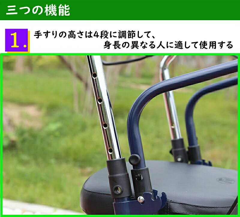 【商品仕様】 ■サイズ:62*45*87-95cm ■座面:幅約44cm ■色:赤、青 【商品紹介】 多機能椅子付きシルバーカート 工具不要で簡単組み立て! 身長に合わせて4段階調整が可能です。 お散歩や、お買い物でも便利な、収納かご付きで荷物を鞄や買い物袋を収納し楽に歩行、移動が可能です! ■安心ブレーキ付き、ご安心で使用してください。 ■固定ブレーキ機能(駐車時) ※移動時は、必ずロックが解除されているか確認して下さい。 ■腰かけがあり、疲れた時、座ってもいい ■丈夫で、耐荷重約130kg 関連キーワード:母の日 ギフト 歩行訓練 介護 トイレ お手洗い サポート 手摺り シニア お年寄り 高齢者 補助 立ち上がり補助手すり バリアフリー *モニター発色の具合により実際と異なる場合があります。関連商品ベビーウォーカー 歩行器 3way ベビー 乗り物 乗用玩具 F1型 ...ベビーウォーカー ベビー歩行器 歩行器 赤ちゃん 折りたたみ 高さ調整...15,480円12,600円敬老の日 プレゼント ギフト ゴルフ練習マット ゴルフ練習マット 15...人毛100% 自然 フルウィッグ 自然黒 ミセス フルウィッグ 人毛1...23,400円23,810円ナチュラル ウィッグ フルウィッグ ミディアム ロング 人毛100% ...無垢材 両用 はしご 椅子 脚立 木製 踏台 はしご 屋内多機能 4段...23,810円18,800円石臼 セット 乳鉢 石うす すり鉢 すりこぎ 薬研 キッチン 用品 料...シンク ステンレス タンク 一槽シンク 流し台 大判 オーバーシンク ...5,180円16,850円介護シャンプー器 移動 シャンプー台 介護用 シャンプーチェア リクラ...炭火コンロ アウトドア 室内 コンロ 小型 マルチコンロ ストーブ ソ...26,569円20,780円包装はあくまで商品を保護するためのものであり、 輸送時の衝撃等により包装は変形・破損してしまう場合がございます。誠に申し訳ございませんが、包装の破損は品質保証の範囲外となりますこと、何卒ご容赦ください。 箱は梱包材として扱われ、商品本体には含まれません。 ○使用上の注意事項○ ◆商品写真はできる限り実物の色に近づけるよう徹底しておりますが、 お使いのモニター設定、お部屋の照明等により実際の商品と色味が異なる場合がございます。 ◆製品寸法は手測りのため誤差が生じる可能性がございます。ご理解いただければ幸いです。 ※改造/本来の目的以外/強い衝撃などはお控え下さい。 ※仕様は予告なく変更する場合があります。 ※生産により細かい点で雑に見えるものがございます。不良品ではありません。 ○以上を了承の上、ご購入ください○