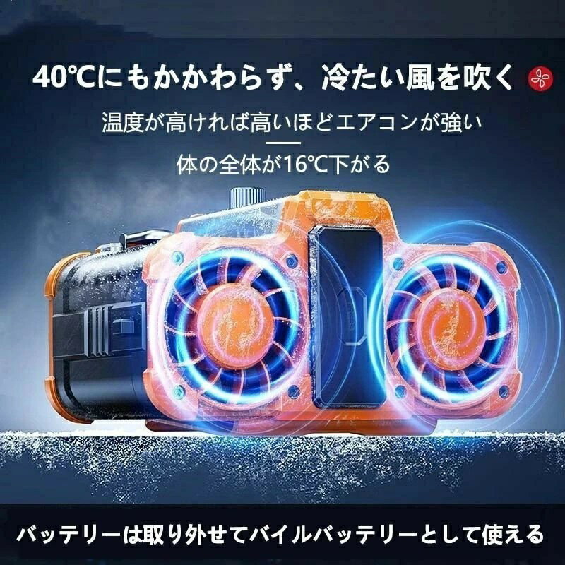 バッテリー内蔵 10000mAhモバイル 小型ベルトファン 二重風腰掛けファン 強力ベルトファン ライト機能付き