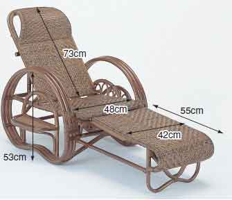 籐椅子 ラタン三つ折寝椅子 リクライニングチェア ダークブラウン色 A202B