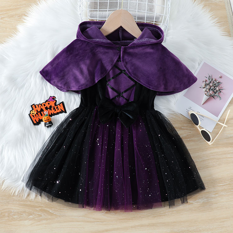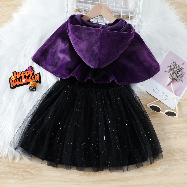 ハロウィン キッズ ワンピース 2点セット かわいい ハロウィン衣装 ポンチョ パーティー イベント クリスマス 誕生日 プレゼント 記念写真 90 100 110 120 130cm halloween パープル マント チュールワンピース 女の子
